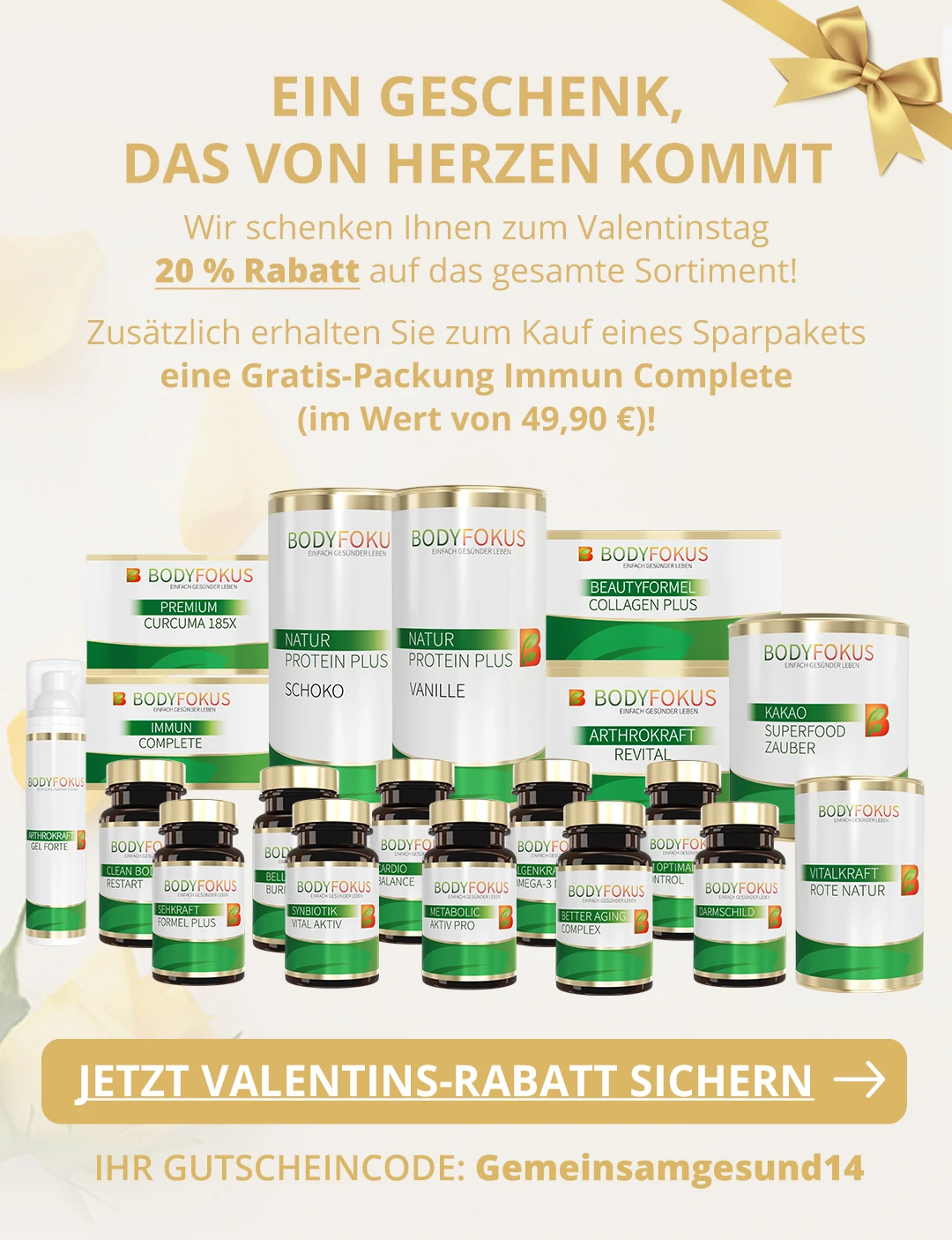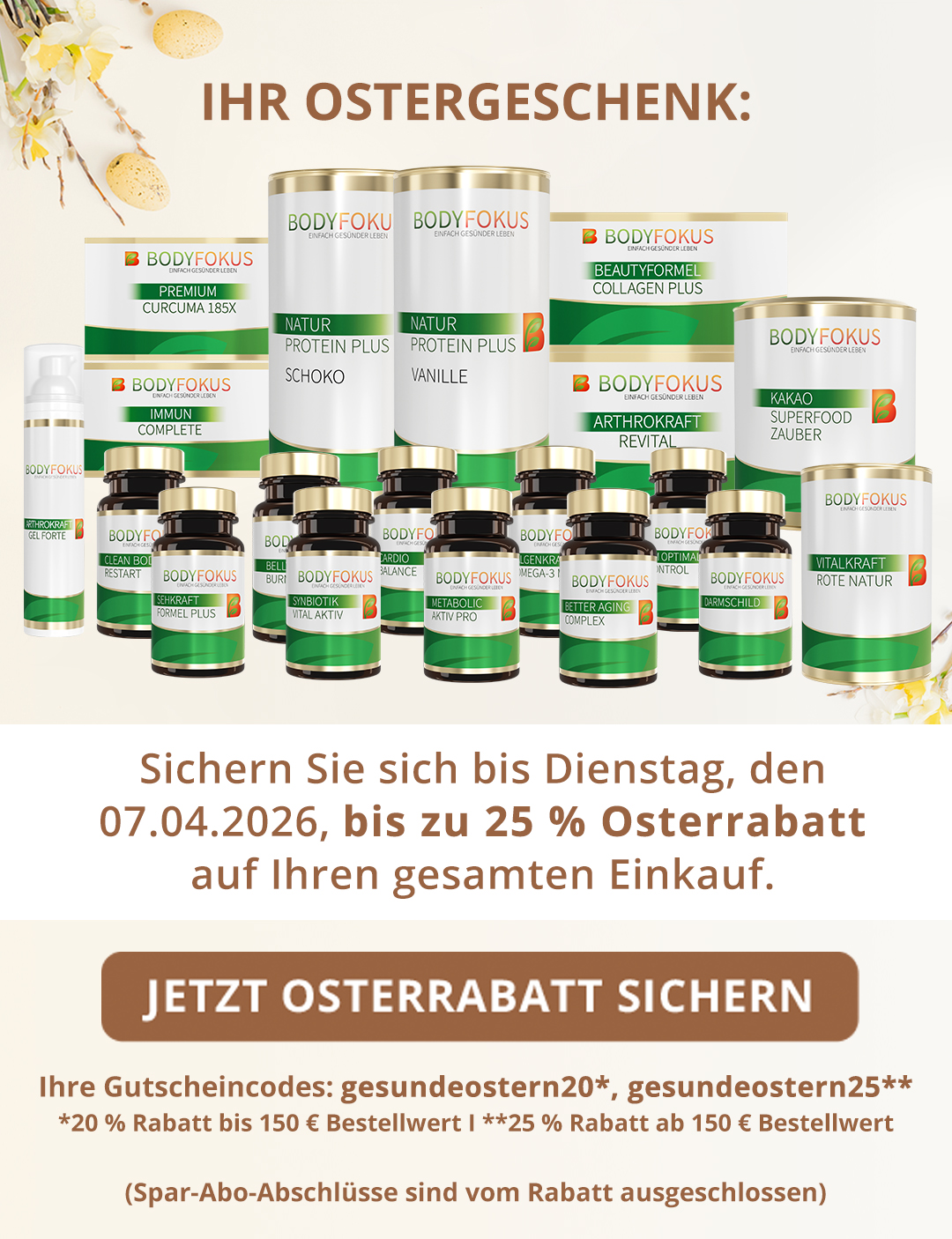 Über 100.000 Kunden vertrauen bei den Themen Gesundheit, Ernährung und Fitness dem BodyFokus-Team, das ihnen als zuverlässiger Partner zur Seite steht. Unsere Produkte, basierend auf Pflanzenstoffen, Vitaminen und Mineralstoffen, werden stets nach neuesten wissenschaftlichen Erkenntnissen entwickelt und entsprechen unseren hohen Qualitätsanforderungen.